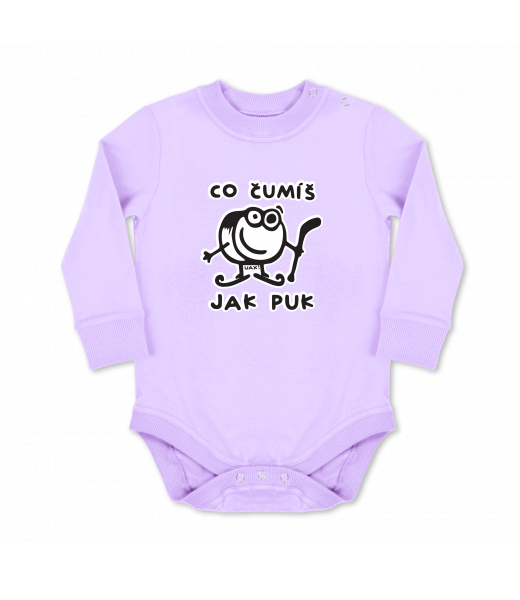 Dětské body dlouhý rukáv Lyžařská kolekce pro muže s potiskem 1101 ČUMÍŠ JAK PUK v barvě LAVENDER