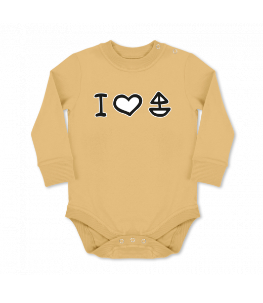 Vyrábíme udržitelné oblečení UAX! - ručně šité v Česku uaxMuži uaxLyžařská kolekceBodýčkaDĚTSKÉ BODY LONGpotisk 1102 - I LOVE YACHTINGMUSTARD