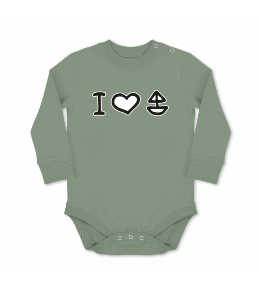 Dětské body dlouhý rukáv Lyžařská kolekce pro muže s potiskem 1102 I LOVE YACHTING v barvě OLIVA