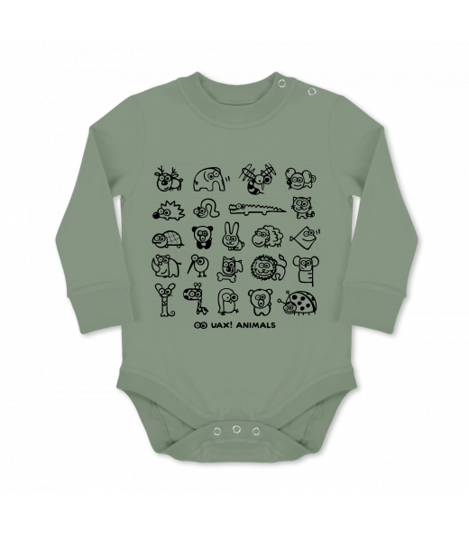 Vyrábíme udržitelné oblečení UAX! - ručně šité v Česku uaxMuži uaxLyžařská kolekceBodýčkaDĚTSKÉ BODY LONGpotisk 1168 - UAX! ANIMALSOLIVA