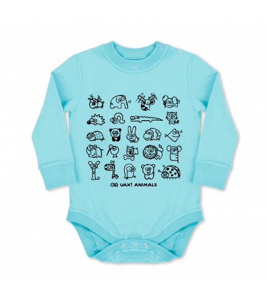 Vyrábíme udržitelné oblečení UAX! - ručně šité v Česku uaxMuži uaxLyžařská kolekceBodýčkaDĚTSKÉ BODY LONGpotisk 1168 - UAX! ANIMALSPASTEL BLUE