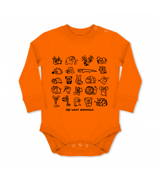 Vyrábíme udržitelné oblečení UAX! - ručně šité v Česku uaxMuži uaxLyžařská kolekceBodýčkaDĚTSKÉ BODY LONGpotisk 1168 - UAX! ANIMALSSIGNAL ORANGE