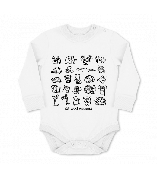 Vyrábíme udržitelné oblečení UAX! - ručně šité v Česku uaxMuži uaxLyžařská kolekceBodýčkaDĚTSKÉ BODY LONGpotisk 1168 - UAX! ANIMALSWHITE