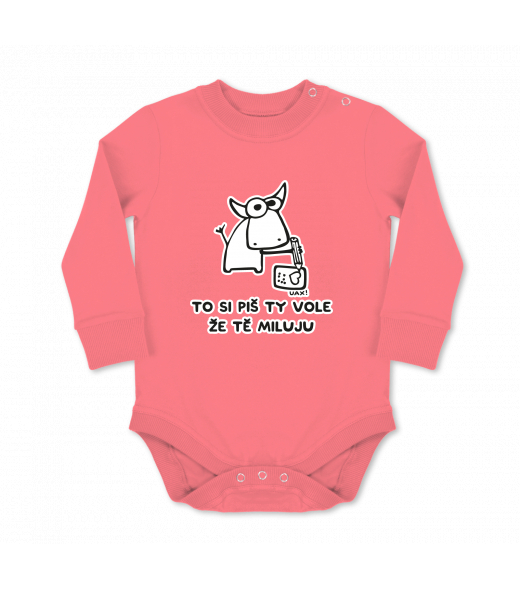 Dětské body dlouhý rukáv Lyžařská kolekce pro muže s potiskem 1192 TO SI PIŠ TY VOLE ŽE TĚ MILUJU v barvě LOSOSOVA