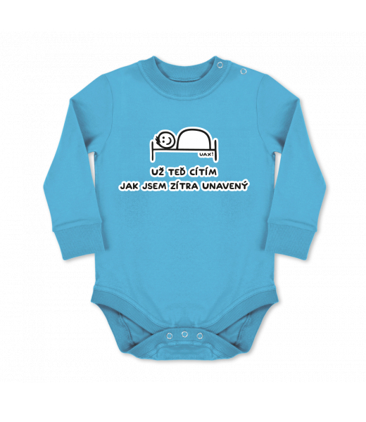 Dětské body dlouhý rukáv Lyžařská kolekce pro muže s potiskem 1200 UŽ TEĎ CÍTÍM JAK JSEM ZÍTRA UNAVENÝ v barvě BLUE ATOLL