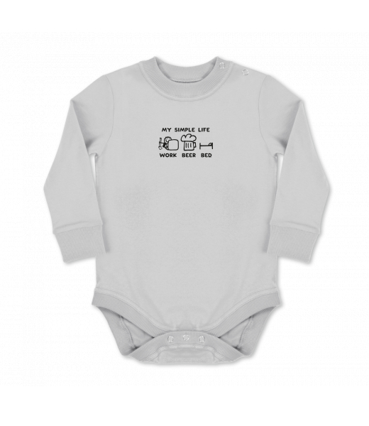 Dětské body dlouhý rukáv Lyžařská kolekce pro muže s potiskem 1211 MY SIMPLE LIFE WORK BEER BED v barvě CEMENT