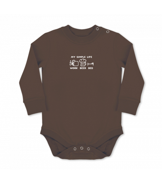 Dětské body dlouhý rukáv Lyžařská kolekce pro muže s potiskem 1211 MY SIMPLE LIFE WORK BEER BED v barvě CHESTNUT