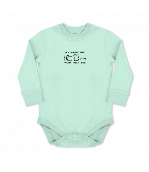 Dětské body dlouhý rukáv Lyžařská kolekce pro muže s potiskem 1211 MY SIMPLE LIFE WORK BEER BED v barvě MINT