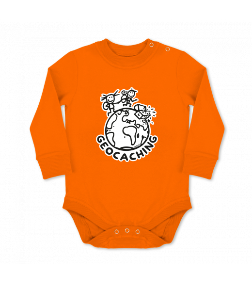 Vyrábíme udržitelné oblečení UAX! - ručně šité v Česku uaxMuži uaxLyžařská kolekceBodýčkaDĚTSKÉ BODY LONGpotisk 1215 - GEOCACHINGSIGNAL ORANGE