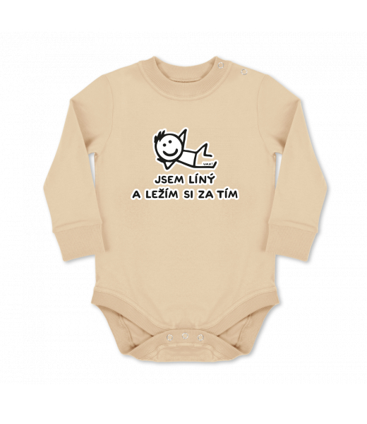 Dětské body dlouhý rukáv Lyžařská kolekce pro muže s potiskem 1217 JSEM LÍNÝ A LEŽÍM SI ZA TÍM v barvě CARAMEL