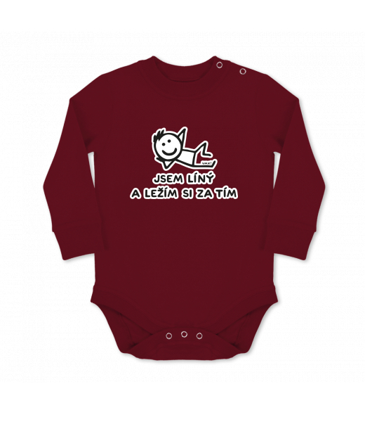 Vyrábíme udržitelné oblečení UAX! - ručně šité v Česku uaxMuži uaxLyžařská kolekceBodýčkaDĚTSKÉ BODY LONGpotisk 1217 - JSEM LÍNÝ A LEŽÍM SI ZA TÍMDARK RED
