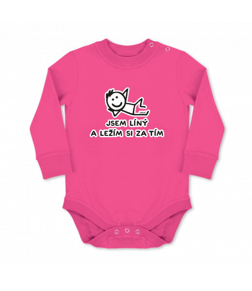 Vyrábíme udržitelné oblečení UAX! - ručně šité v Česku uaxMuži uaxLyžařská kolekceBodýčkaDĚTSKÉ BODY LONGpotisk 1217 - JSEM LÍNÝ A LEŽÍM SI ZA TÍMINDIAN LILA
