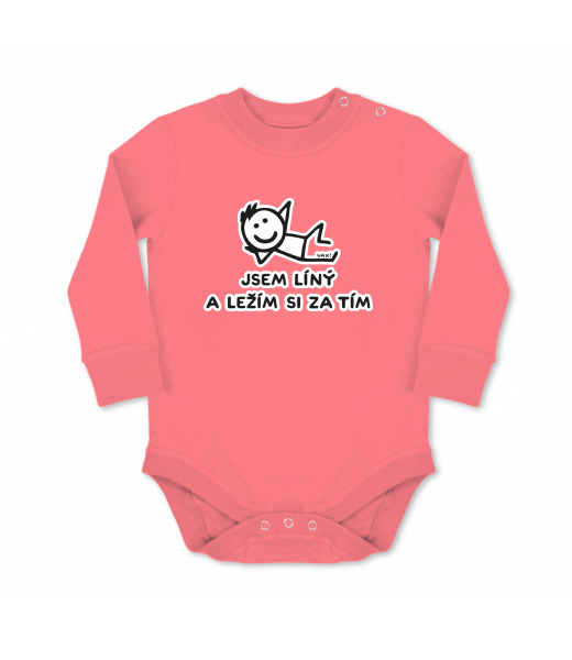 Dětské body dlouhý rukáv Lyžařská kolekce pro muže s potiskem 1217 JSEM LÍNÝ A LEŽÍM SI ZA TÍM v barvě LOSOSOVA