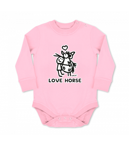 Vyrábíme udržitelné oblečení UAX! - ručně šité v Česku uaxMuži uaxLyžařská kolekceBodýčkaDĚTSKÉ BODY LONGpotisk 1219 - LOVE HORSEBABY PINK