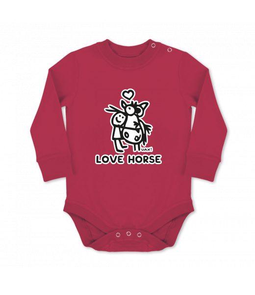 Vyrábíme udržitelné oblečení UAX! - ručně šité v Česku uaxMuži uaxLyžařská kolekceBodýčkaDĚTSKÉ BODY LONGpotisk 1219 - LOVE HORSECHILLY PEPPER RED