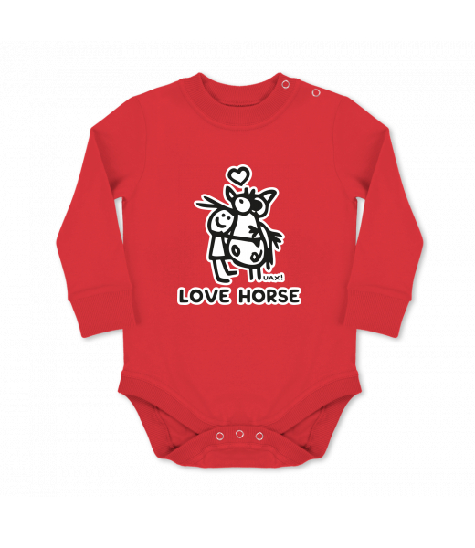 Dětské body dlouhý rukáv Lyžařská kolekce pro muže s potiskem 1219 LOVE HORSE v barvě RED