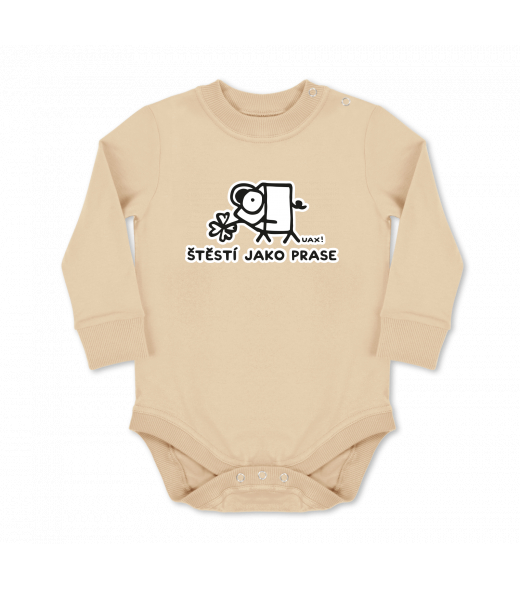 Vyrábíme udržitelné oblečení UAX! - ručně šité v Česku uaxMuži uaxLyžařská kolekceBodýčkaDĚTSKÉ BODY LONGpotisk 1220 - ŠTĚSTÍ JAKO PRASECARAMEL