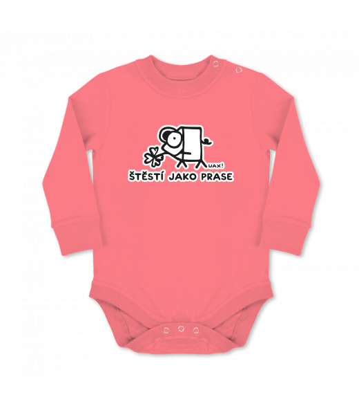 Dětské body dlouhý rukáv Lyžařská kolekce pro muže s potiskem 1220 ŠTĚSTÍ JAKO PRASE v barvě LOSOSOVA
