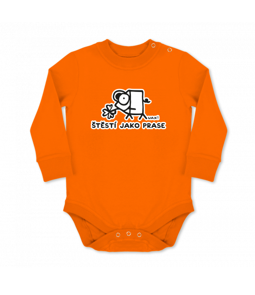 Vyrábíme udržitelné oblečení UAX! - ručně šité v Česku uaxMuži uaxLyžařská kolekceBodýčkaDĚTSKÉ BODY LONGpotisk 1220 - ŠTĚSTÍ JAKO PRASESIGNAL ORANGE