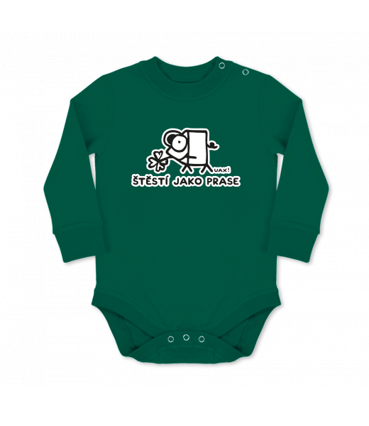 Vyrábíme udržitelné oblečení UAX! - ručně šité v Česku uaxMuži uaxLyžařská kolekceBodýčkaDĚTSKÉ BODY LONGpotisk 1220 - ŠTĚSTÍ JAKO PRASEUNIVERSITY GREEN