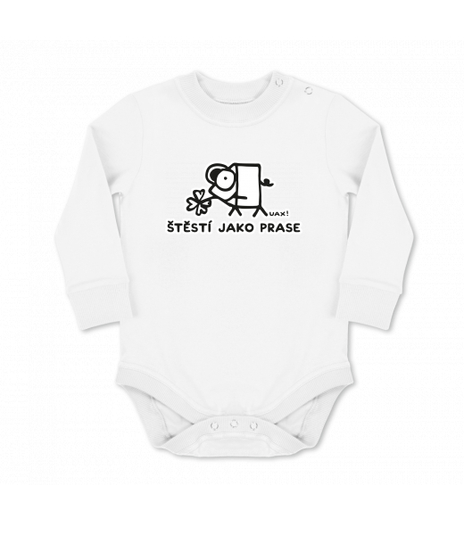 Vyrábíme udržitelné oblečení UAX! - ručně šité v Česku uaxMuži uaxLyžařská kolekceBodýčkaDĚTSKÉ BODY LONGpotisk 1220 - ŠTĚSTÍ JAKO PRASEWHITE