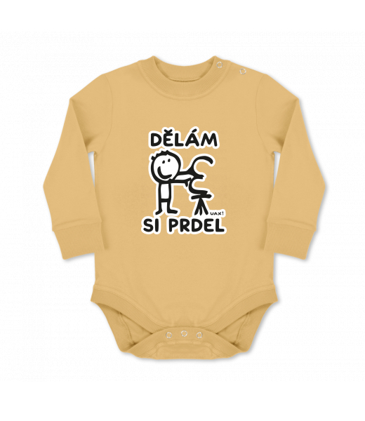 Dětské body dlouhý rukáv Lyžařská kolekce pro muže s potiskem 1235 DĚLÁM SI PRDEL v barvě MUSTARD