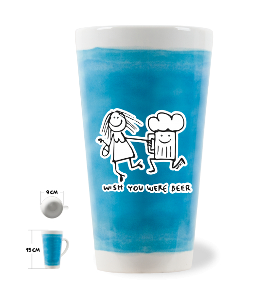 HRNEK LATTE UAX! o objemu 0,4L Lyžařská kolekce pro muže s potiskem 1049 WISH YOU WERE BEER v barvě BLUE ATOLL