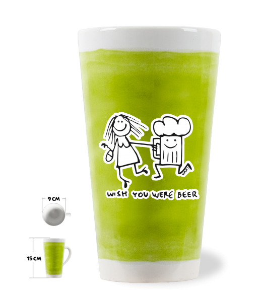 HRNEK LATTE UAX! o objemu 0,4L Lyžařská kolekce pro muže s potiskem 1049 WISH YOU WERE BEER v barvě GREEN LIMET