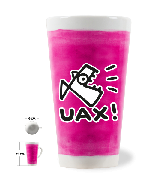 Originální HRNEK LATTE UAX! s uchem o objemu 0,4L se stane stylovým doplňkem do Vašich domácností. Mix & Match - Vybírej z mnoha originálních potisků a kombinuj anilinové barvy podkladu. HRNEK LATTE 0,4L vyrábíme tak, že nejdříve provádíme vytištění předlohy potisku na přenosový papír na stroji Mimaki TS5 a následnou sublimaci pomoci sublimačního lisu. Tiskneme na hrnky se spec. povrchovou úpravou pro potisk, kdy základní barva hrnku je bílá.