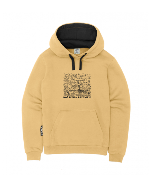 Vyrábíme udržitelné oblečení UAX! - ručně šité v Česku uaxMuži uaxLyžařská kolekceMikinyPÁNSKÁ MIKINA KANGAROO ZATEPLENÁpotisk 1267 - REGION RAZOVITYMUSTARD