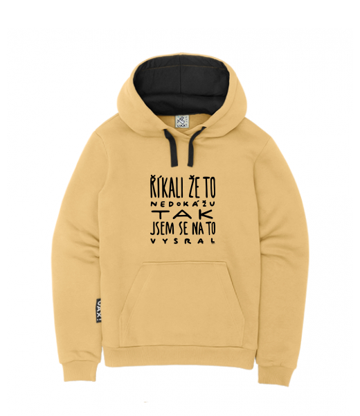 Vyrábíme udržitelné oblečení UAX! - ručně šité v Česku uaxMuži uaxLyžařská kolekceMikinyPÁNSKÁ MIKINA KANGAROO ZATEPLENÁpotisk 1366 - ŘÍKALI ŽE TO NEDOKÁŽU TAK JSEM SE NA TO VYSRALMUSTARD