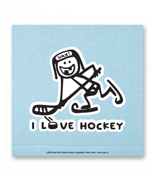 Vyrábíme udržitelné oblečení UAX! - ručně šité v Česku uaxMuži uaxLyžařská kolekcePostery na zeďPOSTER UAX! 80x80cmpotisk 1100 - I LOVE HOCKEYPASTEL BLUE