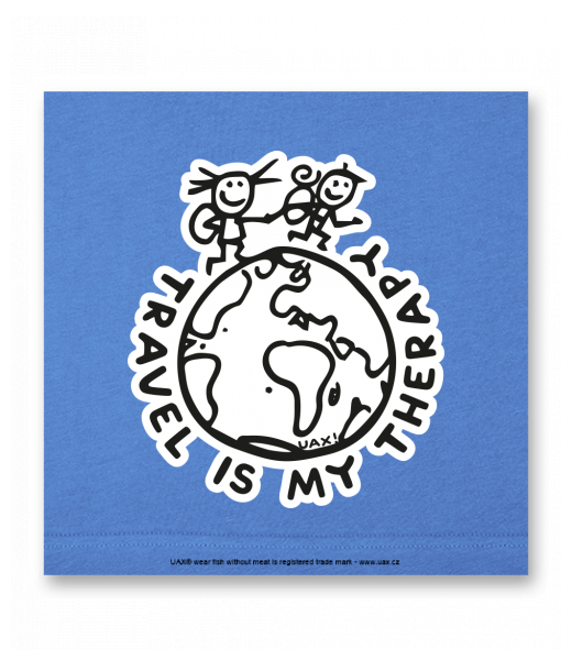 Vyrábíme udržitelné oblečení UAX! - ručně šité v Česku uaxMuži uaxLyžařská kolekcePostery na zeďPOSTER UAX! 80x80cmpotisk 1240 - TRAVEL IS MY THERAPYCAPRI BLUE
