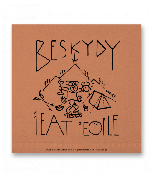 Vyrábíme udržitelné oblečení UAX! - ručně šité v Česku uaxMuži uaxLyžařská kolekcePostery na zeďPOSTER UAX! 80x80cmpotisk 1241 - I EAT PEOPLE BESKYDYMANDARIAN ORANGE