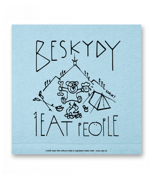Vyrábíme udržitelné oblečení UAX! - ručně šité v Česku uaxMuži uaxLyžařská kolekcePostery na zeďPOSTER UAX! 80x80cmpotisk 1241 - I EAT PEOPLE BESKYDYPASTEL BLUE