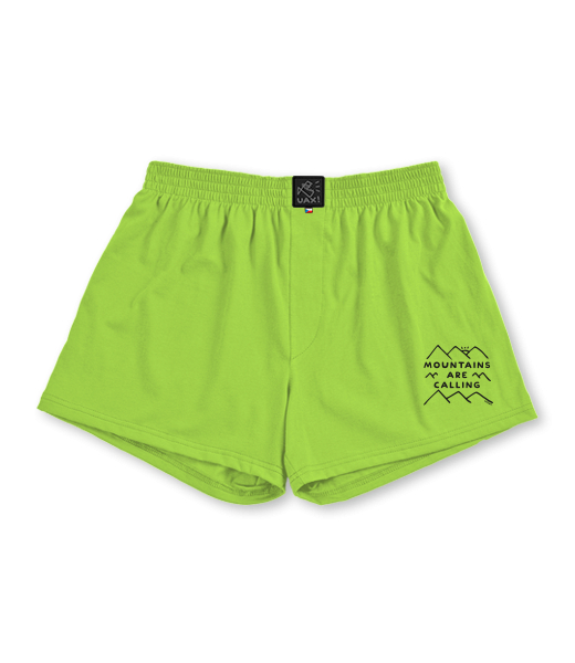 Vyrábíme udržitelné oblečení UAX! - ručně šité v Česku uaxMuži uaxLyžařská kolekceTrenýrkyTRENKYpotisk 1204 - MOUNTAINS ARE CALLINGPARROT GREEN