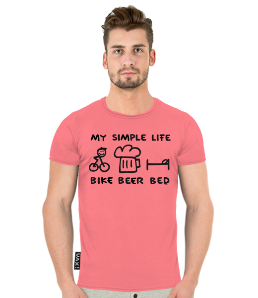 Pánské tričko BALI Lyžařská kolekce pro muže s potiskem 1056 BIKE BEER BED v barvě LOSOSOVA