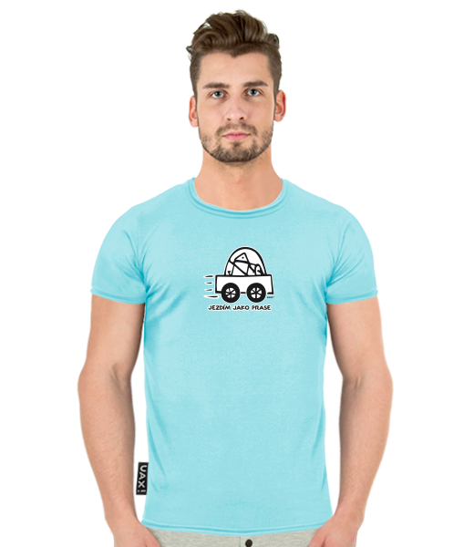 Vyrábíme udržitelné oblečení UAX! - ručně šité v Česku uaxMuži uaxLyžařská kolekceTričkaTRIČKO BALIpotisk 1072 - JEZDÍM JAKO PRASEPASTEL BLUE