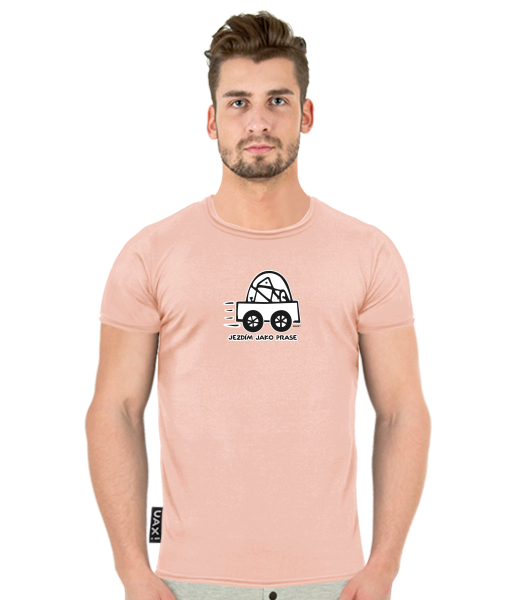 Pánské tričko BALI Lyžařská kolekce pro muže s potiskem 1072 JEZDÍM JAKO PRASE v barvě PEACH