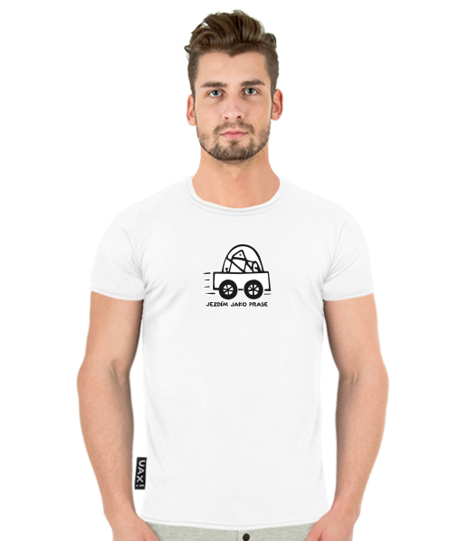 Vyrábíme udržitelné oblečení UAX! - ručně šité v Česku uaxMuži uaxLyžařská kolekceTričkaTRIČKO BALIpotisk 1072 - JEZDÍM JAKO PRASEWHITE