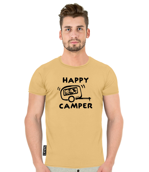 Vyrábíme udržitelné oblečení UAX! - ručně šité v Česku uaxMuži uaxLyžařská kolekceTričkaTRIČKO BALIpotisk 1116 - HAPPY CAMPERMUSTARD