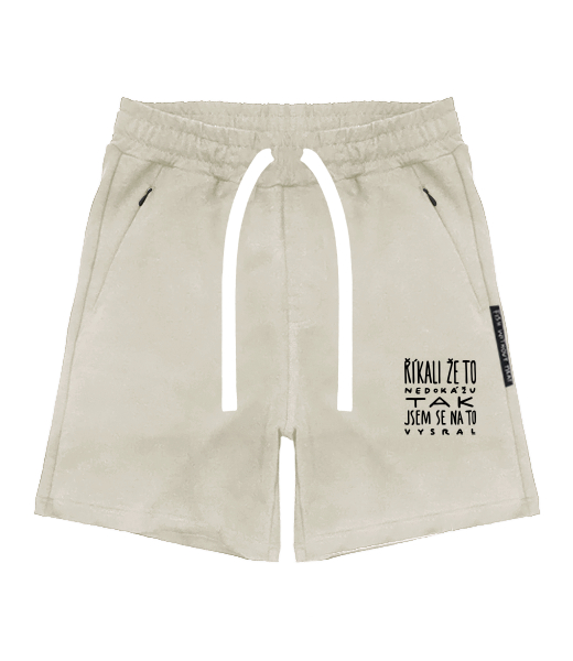 Kraťasy pánské s kapsami na zip s originálním potiskem pro muže s potiskem 1366 ŘÍKALI ŽE TO NEDOKÁŽU TAK JSEM SE NA TO VYSRAL v barvě IVORY