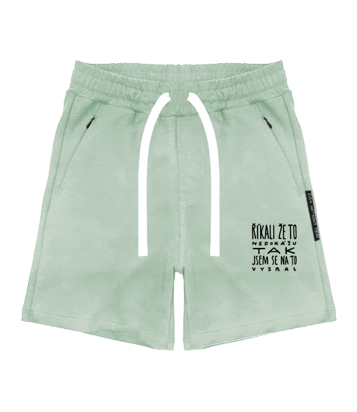 Kraťasy pánské s kapsami na zip s originálním potiskem pro muže s potiskem 1366 ŘÍKALI ŽE TO NEDOKÁŽU TAK JSEM SE NA TO VYSRAL v barvě PISTACHIO