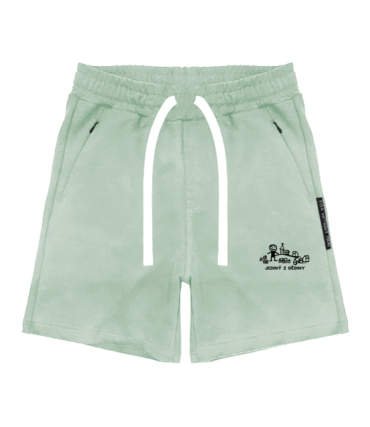 Kraťasy pánské s kapsami na zip s originálním potiskem pro muže s potiskem 1393 JEDINÝ Z DĚDINY v barvě PISTACHIO