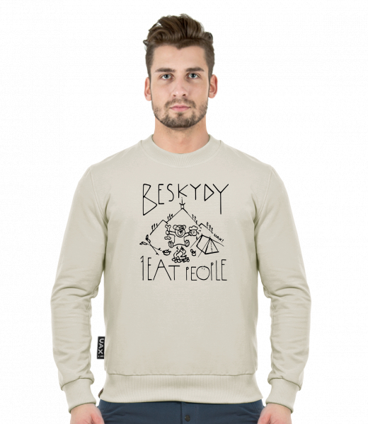 Pánská mikina CREWNECK MEN CLASSIC pro muže s potiskem 1241 I EAT PEOPLE BESKYDY v barvě IVORY