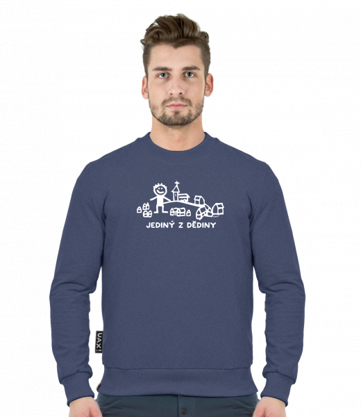 Pánská mikina CREWNECK MEN CLASSIC pro muže s potiskem 1393 JEDINÝ Z DĚDINY v barvě JEANS