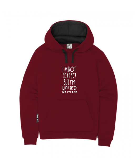 Vyrábíme udržitelné oblečení UAX! - ručně šité v Česku uaxMuži uaxVšechny produktyMikinyPÁNSKÁ MIKINA KANGAROO ZATEPLENÁpotisk 1289 - IM NOT PERFECTDARK RED