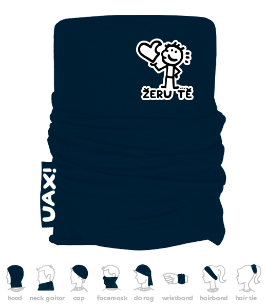 Vyrábíme udržitelné oblečení UAX! - ručně šité v Česku uaxMuži uaxVšechny produktyMultifunkční šátkyMULTIFUNKČNÍ BAVLNĚNÝ ŠÁTEKpotisk 1244 - ŽERU TĚDARK NAVY