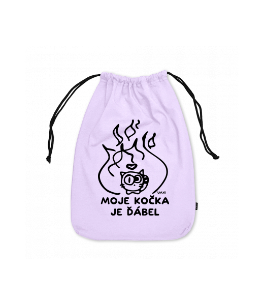 Vyrábíme udržitelné oblečení UAX! - ručně šité v Česku uaxMuži uaxVšechny produktyTašky a pytlíkyBAVLNĚNÝ OBAL 20X30CMpotisk 1326 - MOJE KOČKA JE ĎÁBELLAVENDER
