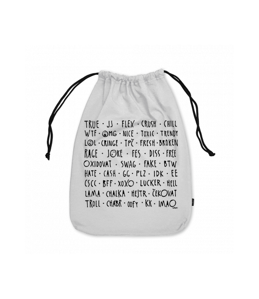 Praktický bavlněný obal na přezůvky 30x40cm s potiskem UAX! Na čelní stranu si můžete vybrat jeden z originálních potisků s optimistickým pohledem na svět, podle aktuální nabídky. Látkový pytlík velký UAX! jistě zaujme Vaše okolí a také účelně poslouží.